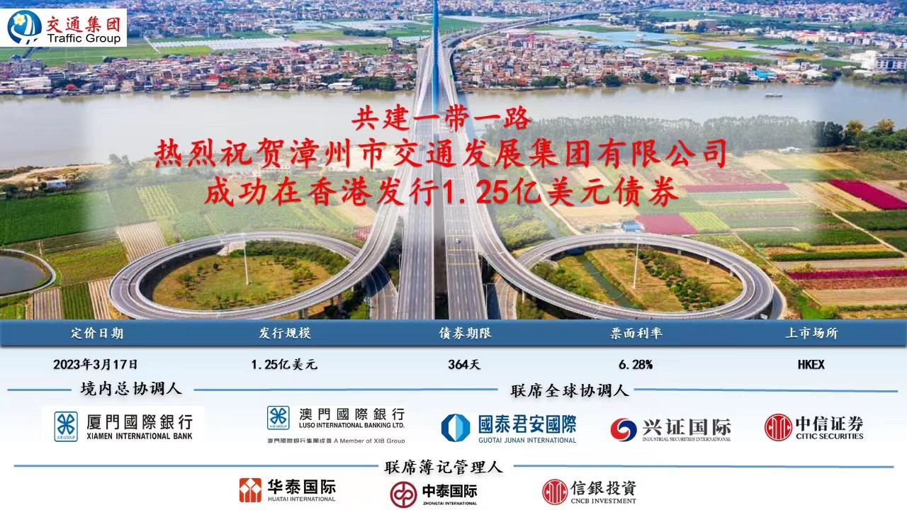????漳州市交通發(fā)展集團(tuán)有限公司成功在香港發(fā)行1.25億美元債券