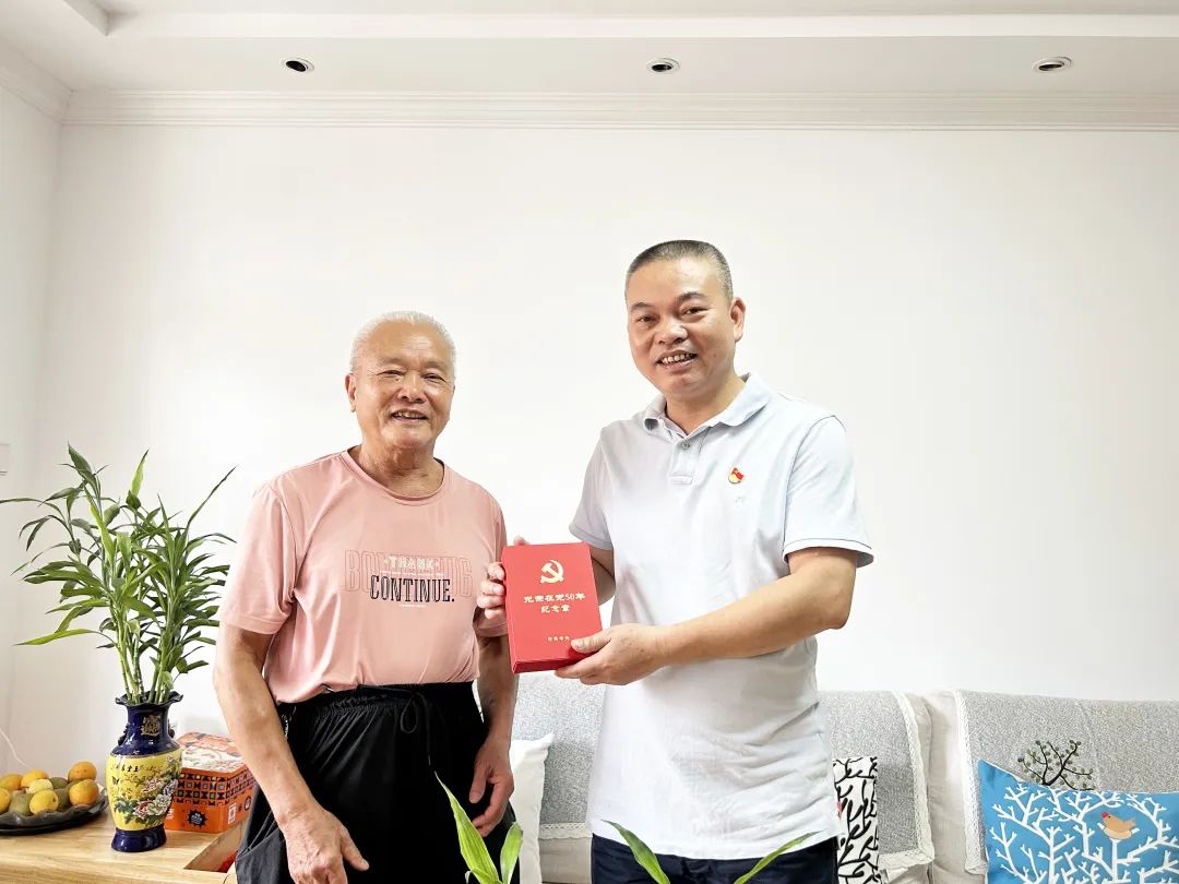 “光榮在黨50年”紀(jì)念章凝聚著黨對(duì)老黨員的關(guān)懷和溫暖,老黨員表示一定牢記黨的宗旨,用實(shí)際行動(dòng)踐行共產(chǎn)黨員的初心和使命。