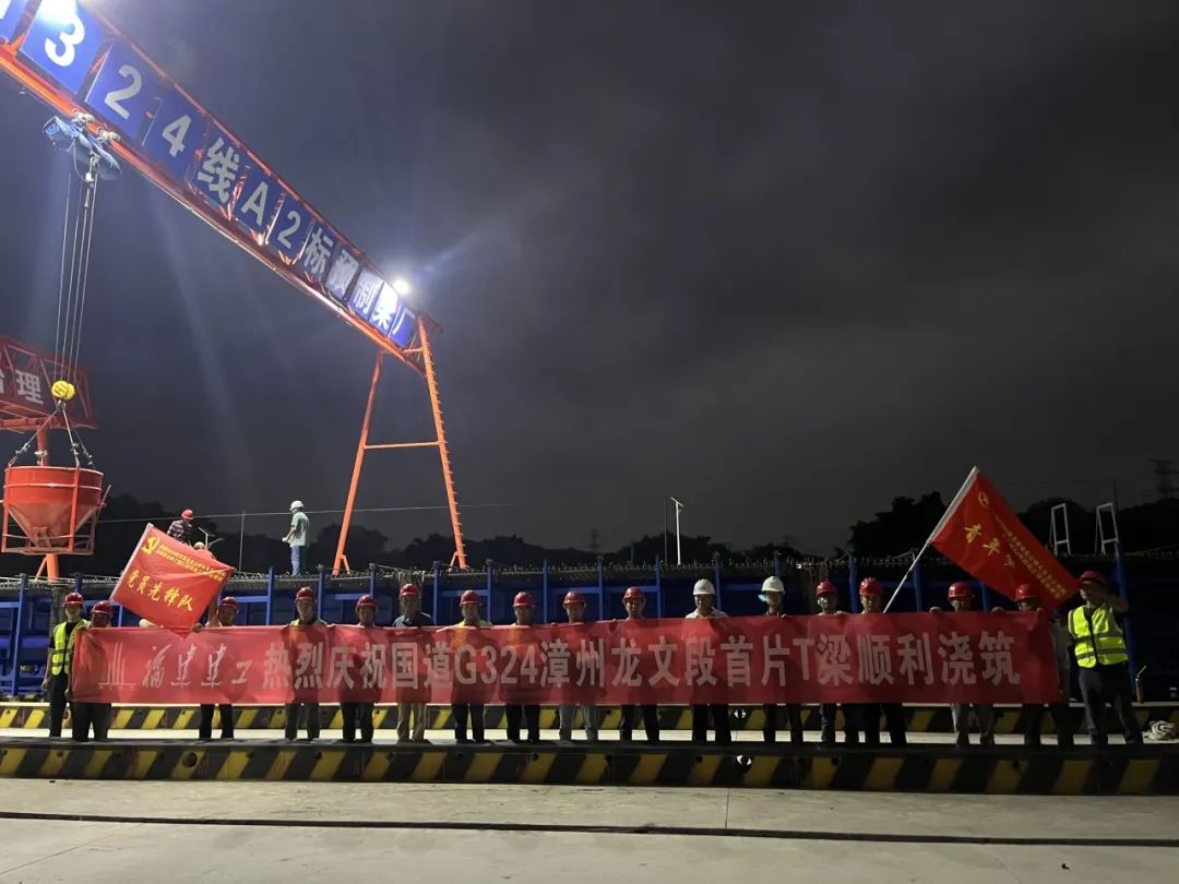 項目進(jìn)展丨國道G324線角美大碑頭至龍文朝陽漳濱段A2標(biāo)段首片T梁順利澆筑