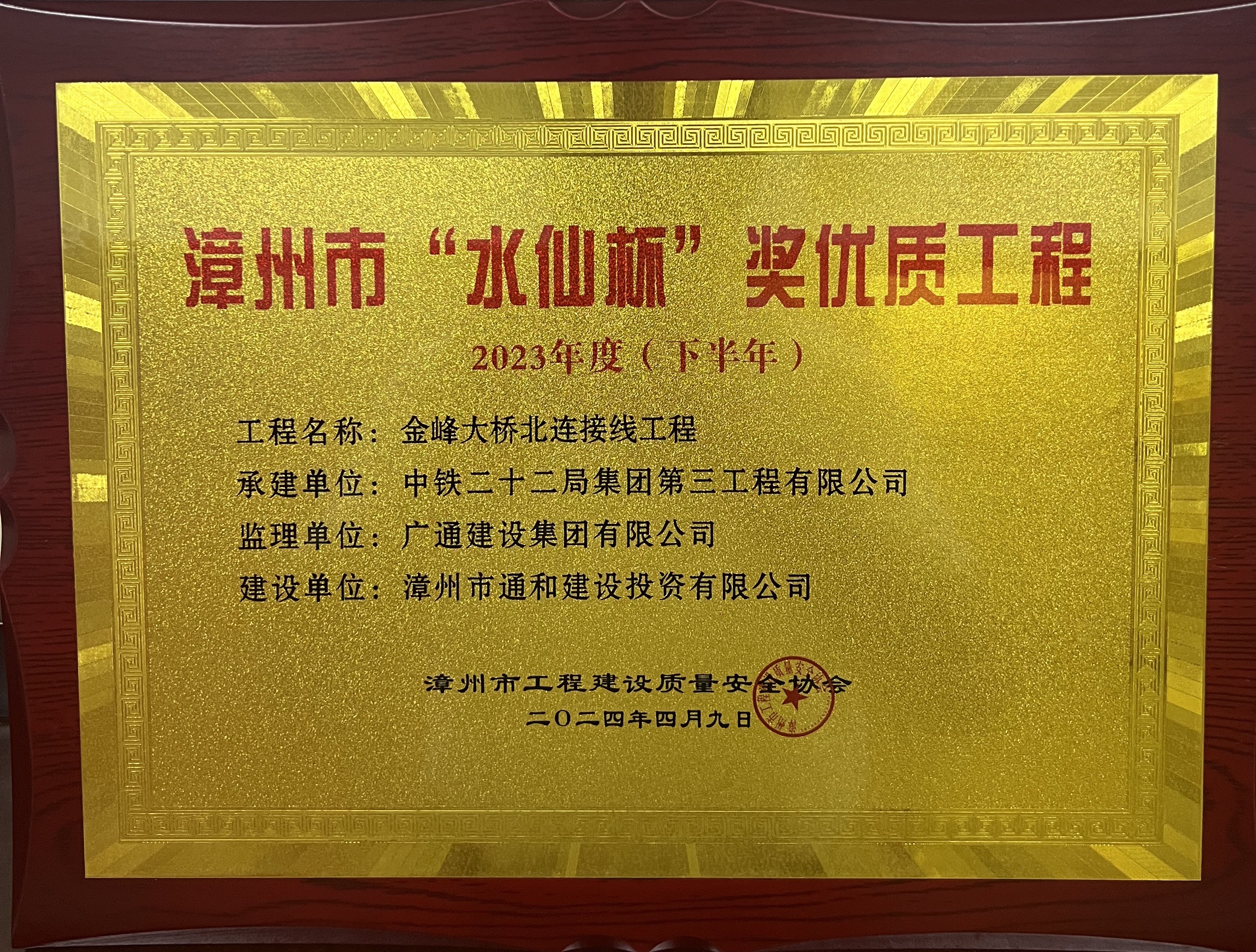 “水仙杯”優(yōu)質(zhì)工程是由漳州市工程建設(shè)質(zhì)量安全協(xié)會設(shè)立的全市建設(shè)工程質(zhì)量獎,又稱漳州市優(yōu)質(zhì)工程。交發(fā)建設(shè)集團榮獲此獎項,充分體現(xiàn)了項目團隊在工程建設(shè)質(zhì)量方面的整體水平,展現(xiàn)了公司雄厚的綜合實力。