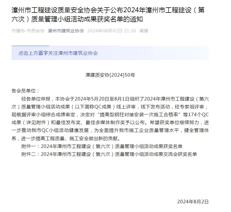 此次獲獎不僅標志著通邦公司在工程質量管控領域邁出了堅實的一步,更為公司后續(xù)項目的順利推進奠定了堅實基礎,同時為后續(xù)參與水仙杯、閩江杯等更高層次榮譽獎項的角逐積累了寶貴經(jīng)驗。